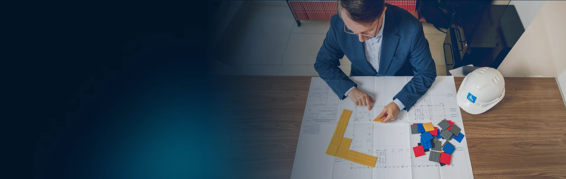 Implementamos sinalização tátil em edifícios comerciais, facilitando a navegação para pessoas com deficiência visual.